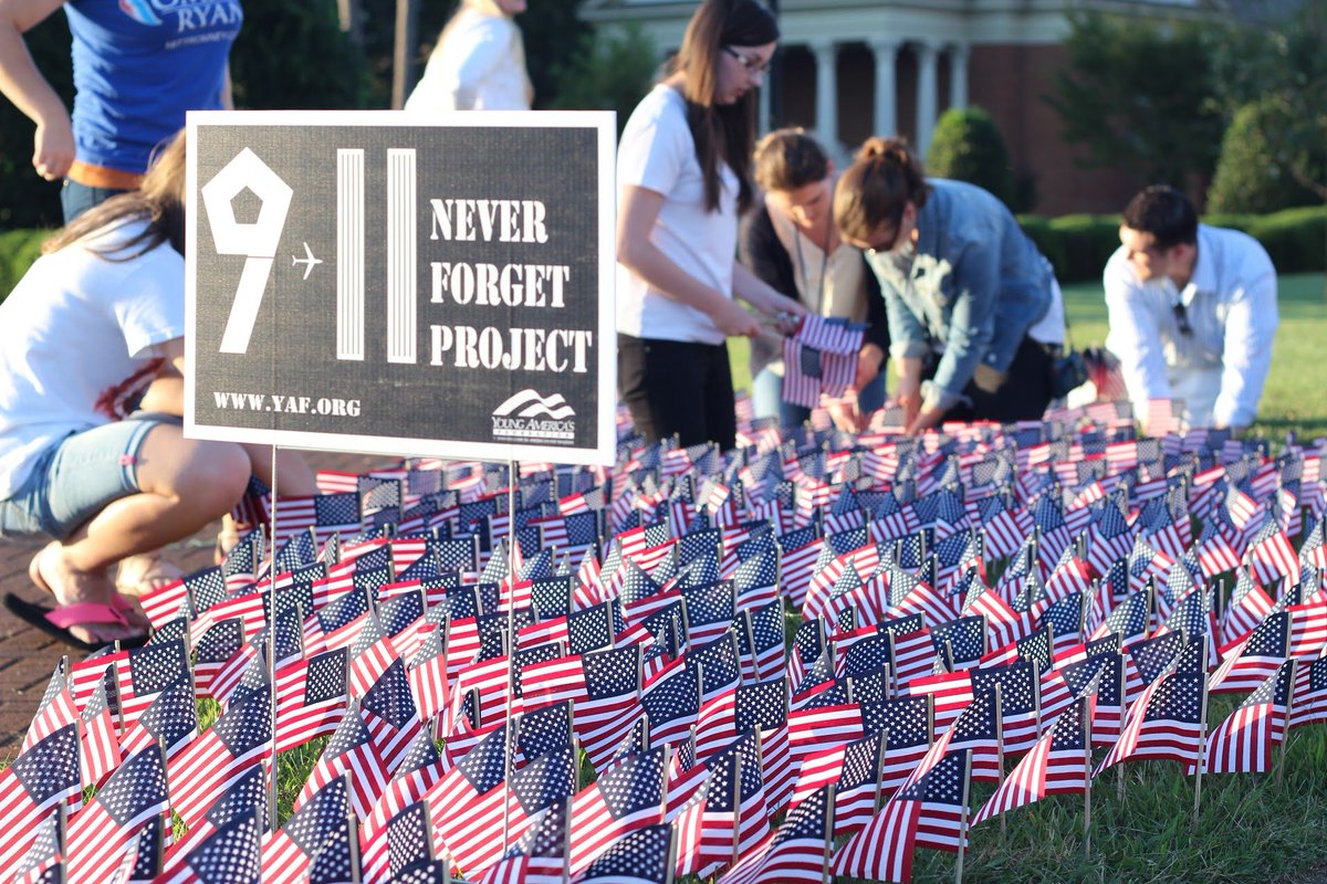 Has your school signed up to participated in the 9/11: Never Forget Project this year? 2,977 flags. Each one will represent a person tragically murdered in the terrorist attacks. https://students.yaf.org/initiatives/911-never-forget-project/ …pic.twitter.com/Un1zm1tK0Z