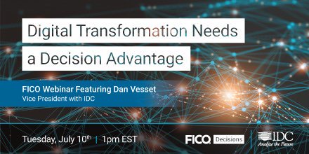 @FICO#DigitalTransformation webinar with@IDC guest host@DanVesset. July 10th, 1pm EST http://bit.ly/2KajNbS pic.twitter.com/VURFBQEbIq