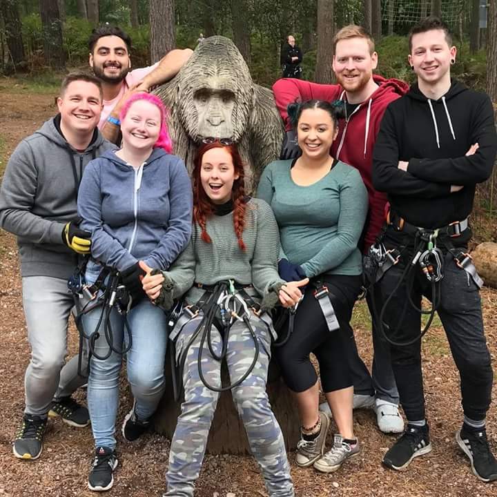 So we went to #goape yesterday and had a blast. Uni reunion is always fun, 8 years knowing these guys and we still meet up every year! Back to Ireland now and streaming starts again tomorrow!pic.twitter.com/djKqRH6boE