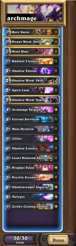 Archmage Vargoth is the shit. List is @ZalaeHS's but -1 pain +1 death. Gonna be cheap and run this straight to legend before the new set