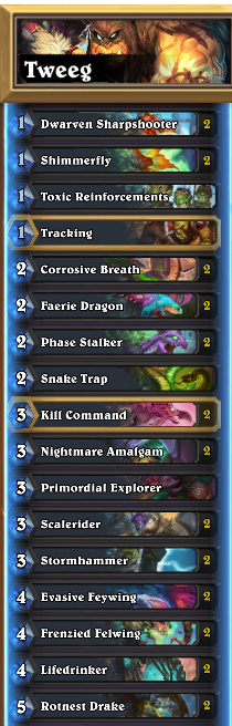 Started the climb yesterday after the break, currently 15-6 with hunter. Solid list i'll probably grind with. List credit to Tweeg #Hearthstonepic.twitter.com/y7vJsmwvwy