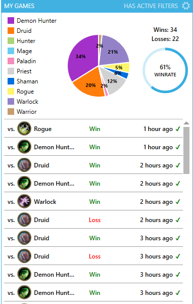 Hit legend today in the new meta with a very standard lock list. Very good against Zoo lock, DH, big Druid and res Priests. Dropped games yesterday against token druid but pulled it back today. stats below with 61% WR @HSTopDecks @ahirunHS @PhelanGamingpic.twitter.com/sXpfwe1MCF