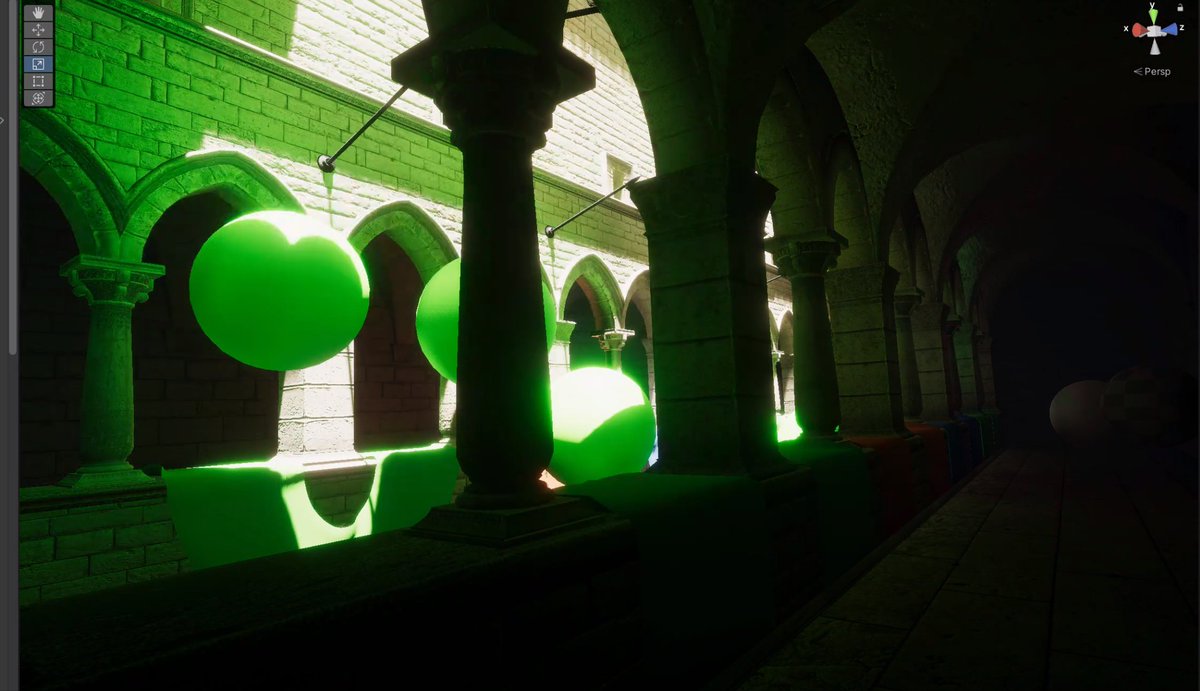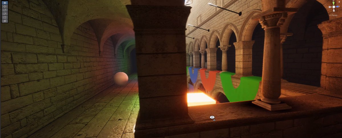 It was gfx Hackweek at Unity this week so I had some fun with real time GI! It is not the most accurate and far from perfect, but it's fast! And sometimes pretty!pic.twitter.com/acv799XRRv