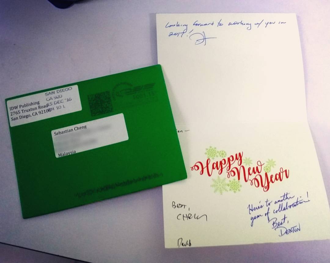 got the cards from the best editor @DavidHedgecock and @dentontipton from IDW Publishing. Thanks so much! Wishing everyone an amazing 2017!pic.twitter.com/WXjrhbjurg