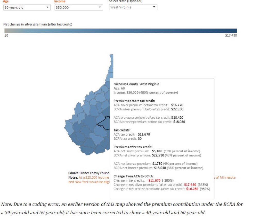 a 60 year old earning %50K in WV would pay $17,000 more per year in premiums alone under the GOP plan.pic.twitter.com/JIR7akLZwR