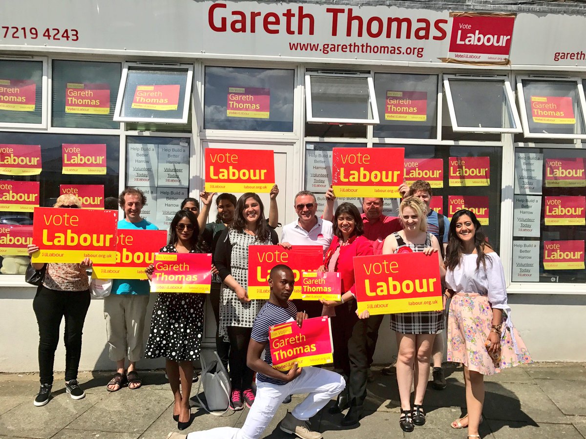 @Uma_Kumaran: Team@GarethThomasMP sun drenched and smiling in#HarrowWest with special guests