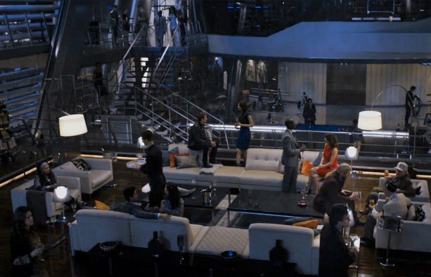 Jacob's bachelor pad in Crazy Stupid Love: Versa Table Bean Bag & Arco Floor Lamp