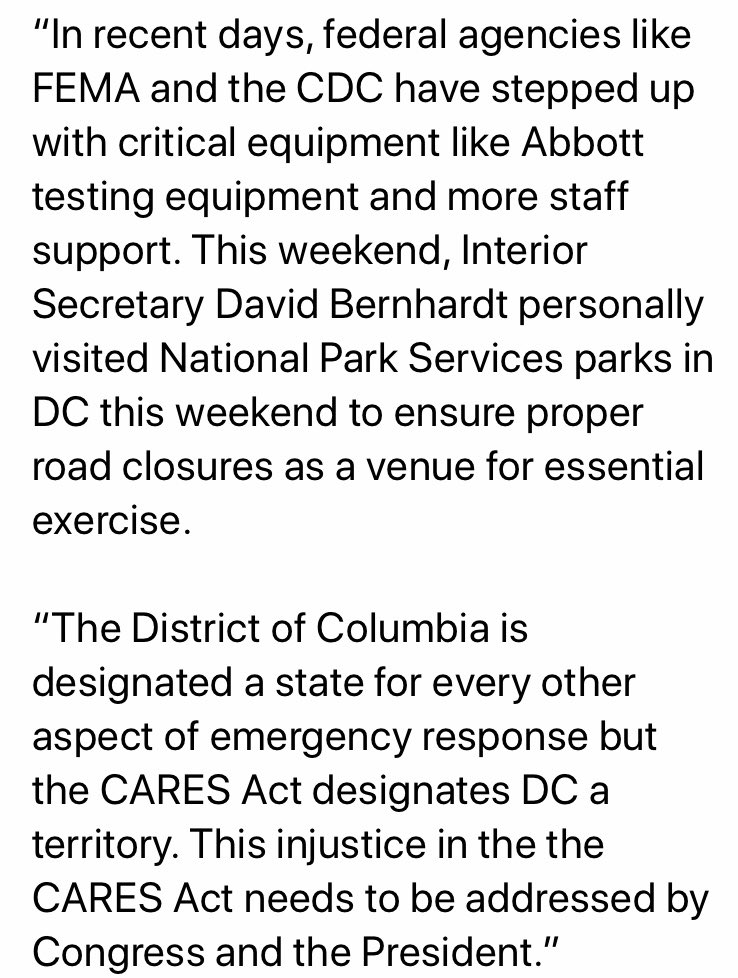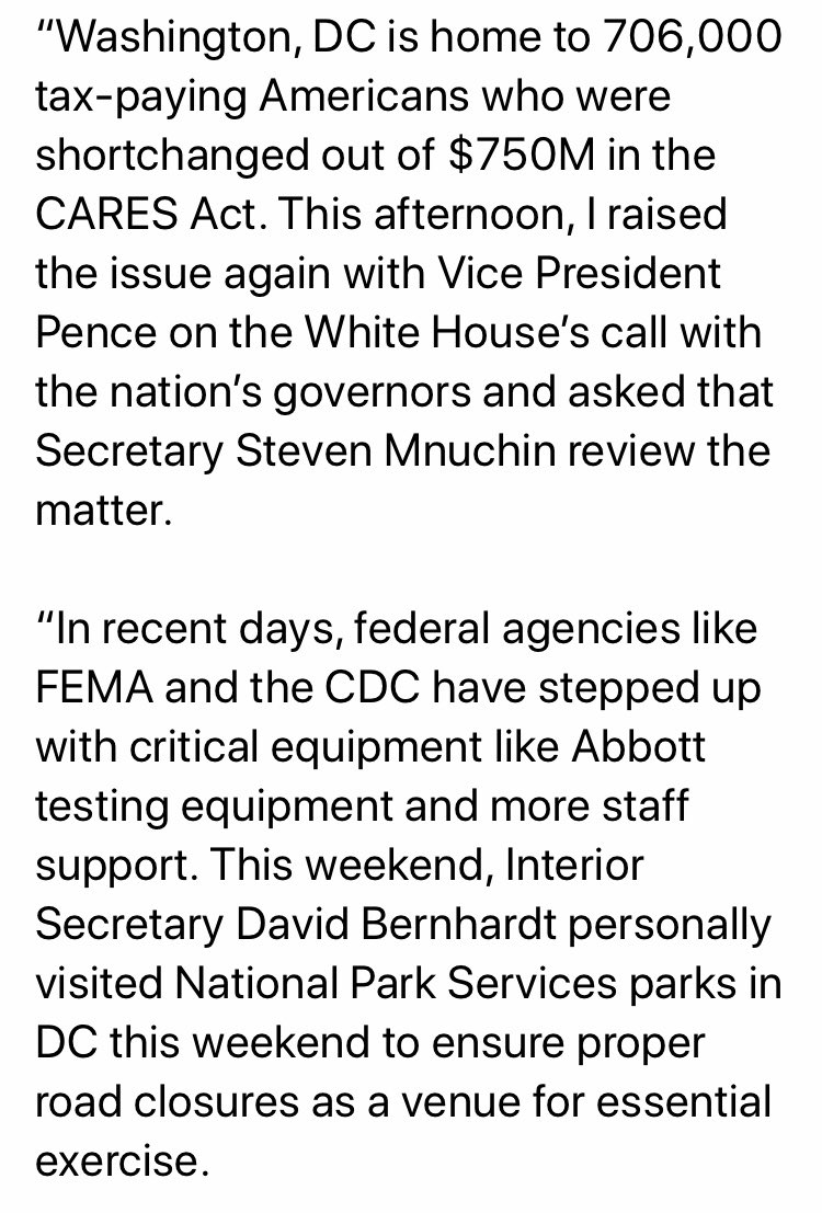 @MayorBowser's statement responding to Trump's lie about her being "very happy" about GOP theft of ~2/3rds of DC pop's federal pandemic response funding because GOP forbids#DCstatehood.#DCstatehoodNewsThanks. Twitter will use this info to make your timeline better. UndoUndo