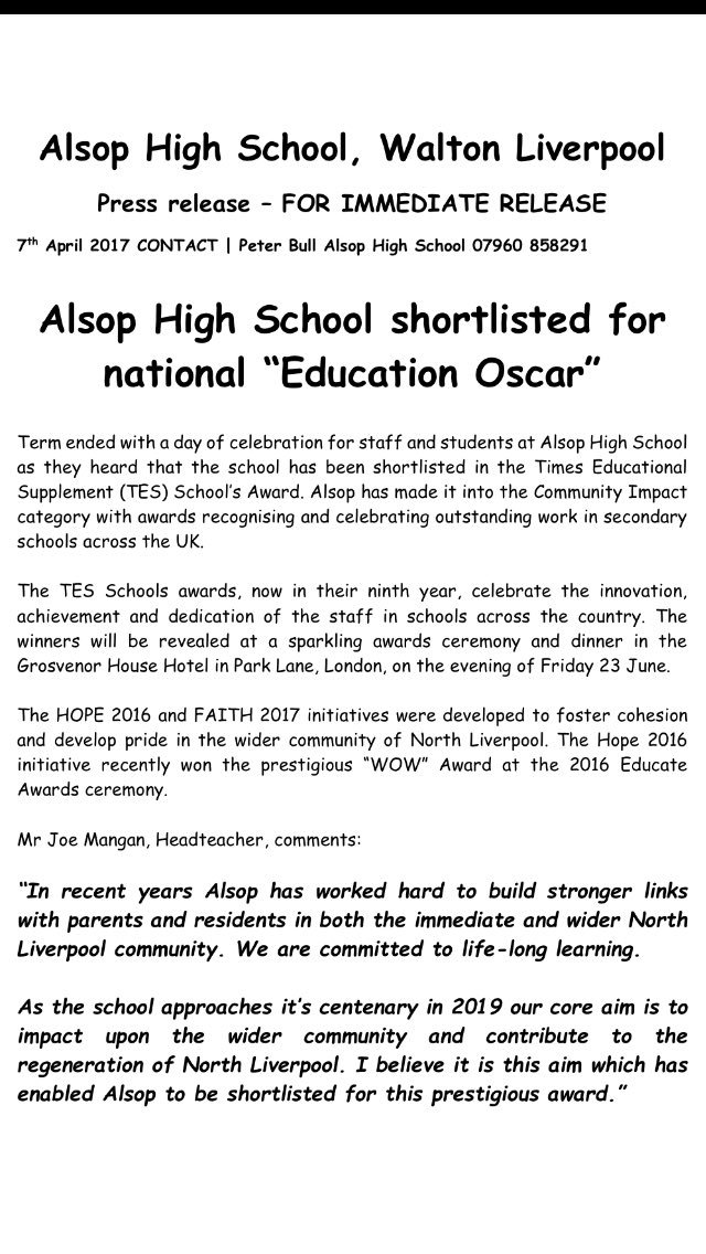 Some brilliant work going on in our community, well done Alsop High School, shortlisted for a national award Keep up the good workpic.twitter.com/zneemuI24j