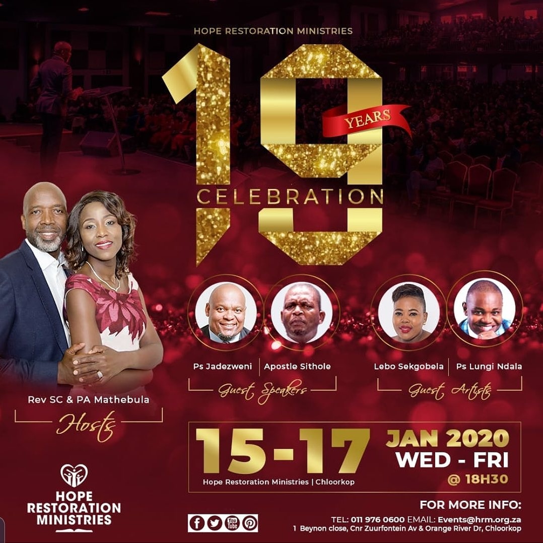 @HopeRestoration's 19th Celebration Anniversary Saturday I will in New Castle at World of Praise Church International. I can't wait to see you there