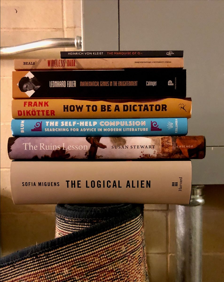Our Front Table this week: enlightenment math, the cultural valuation of ruins, Dadaist telegraph-poetics, new Kleist, & cults of dictatorship. Browse here: http://ow.ly/TVoY50y4pZn