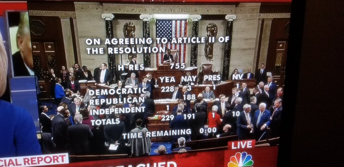 Tonight, as a direct result of his criminal disregard for the safety & security of our nation, Donald Trump became only the 3rd president in the history of our nation to be impeached.