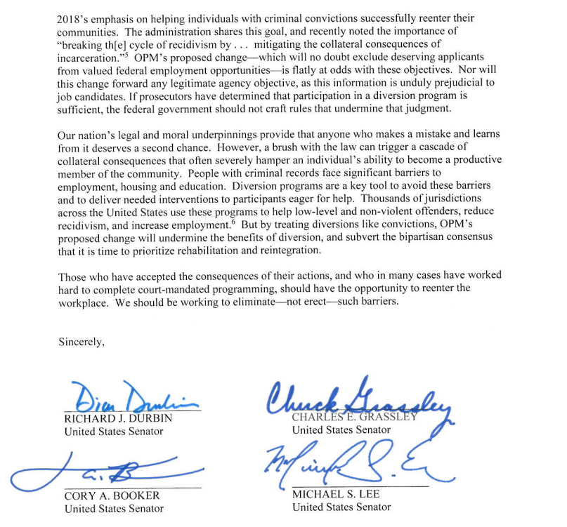 @ChuckGrassley,@SenBooker,@SenMikeLee, and I sent a letter to OPM about this proposed hiring requirement. We should be working to eliminate—not erect—such barriers.pic.twitter.com/cuYA872DnB