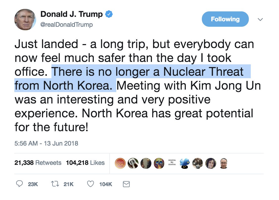 So you're saying we are in EXACTLY the same position that we were BEFORE Trump was elected, except Lil' Kim now has propaganda material for decades of him with a sitting US President.
