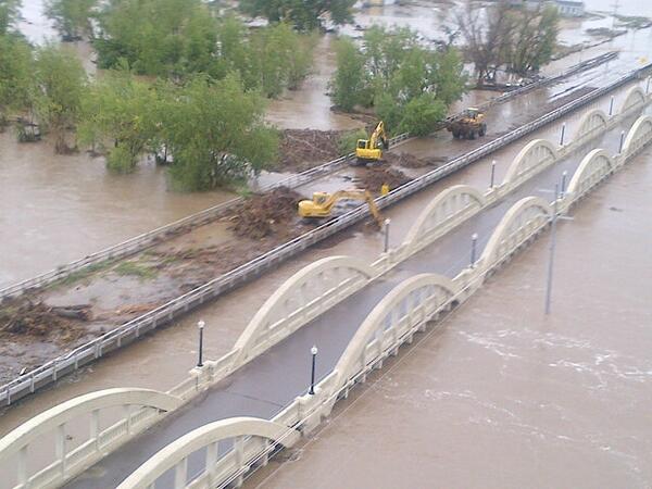 Pray 4 #CO “@repcorygardner: Working to clear debris and save the bridge at Fort Morgan. Levy breached by ball park. pic.twitter.com/hm99UNhRE3”