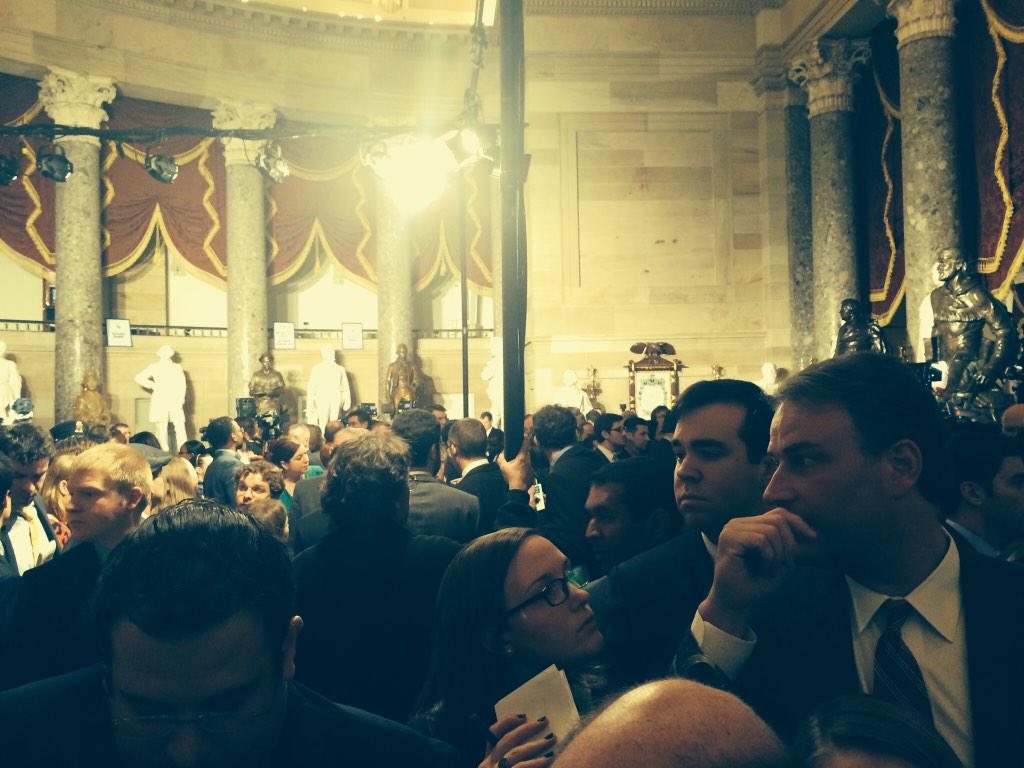My view of the scrum in Statuary Hall as reporters interview lawmakers about the State of the Union! #InsideSOTUpic.twitter.com/qaElxdC8MJ
