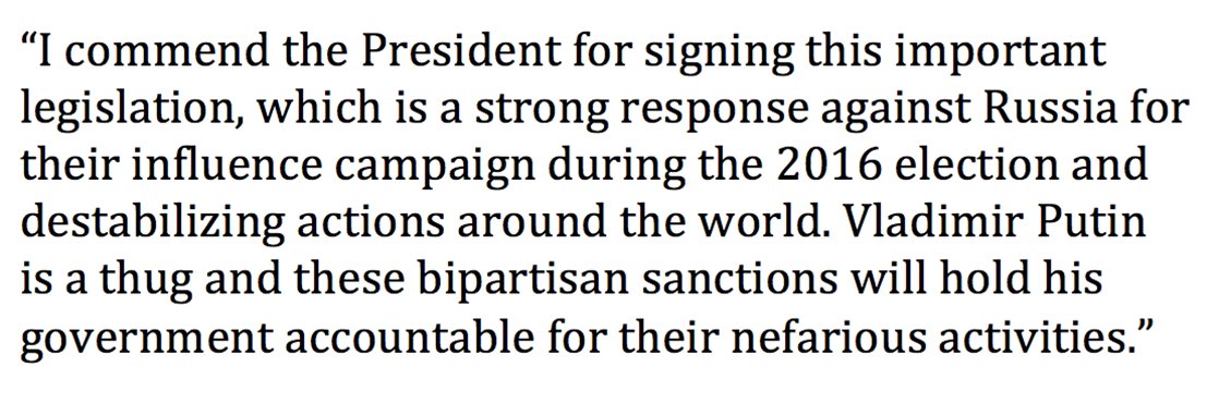 But yet he says bill is unconstitutional & does not accept that Putin interfered in election. The bill was veto proof! And u commend him