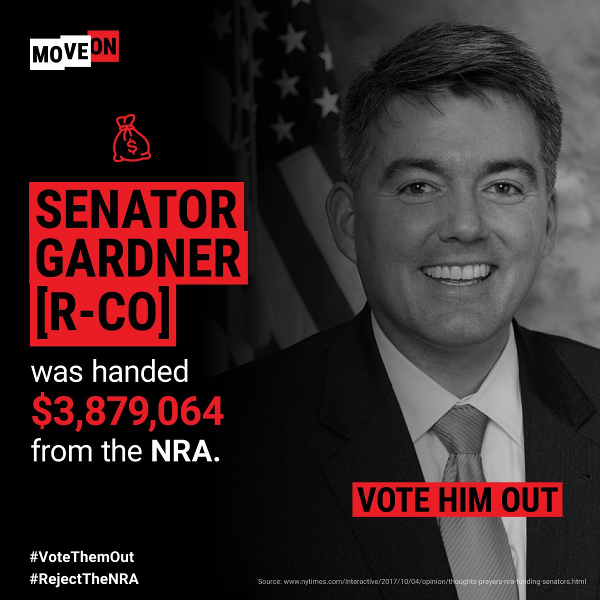 @SenCoryGardner as he cashes@NRA checks without so much as a tinge of guilt. Be involved and help see his blood soaked hands unemployed in 2020.#CoryCash - 1 more reply
