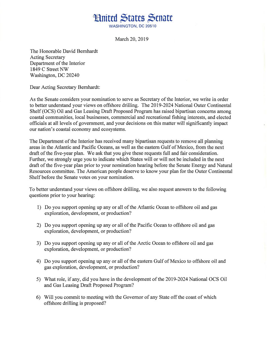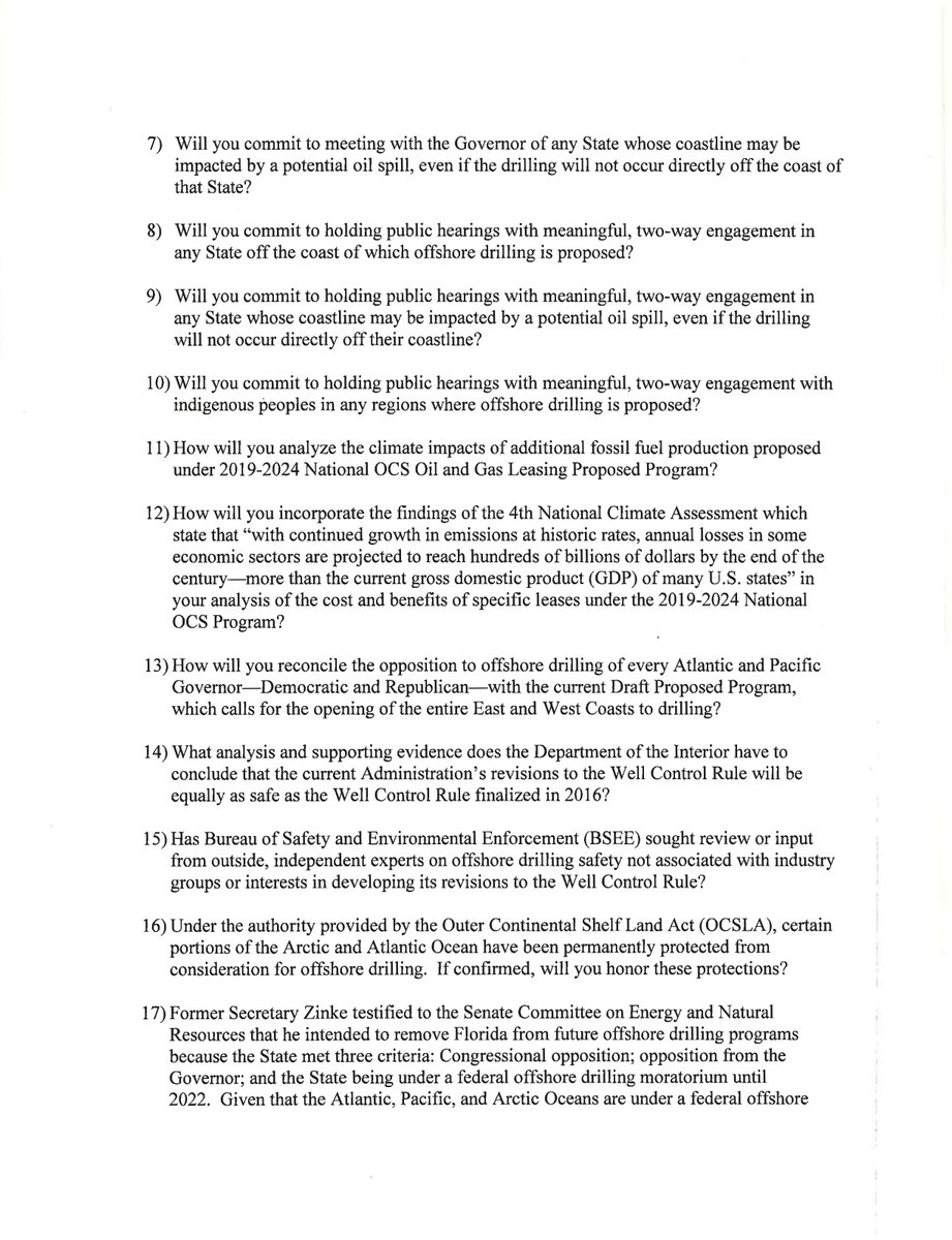 Thank you. I know you'll fight to keep our coastlines free of drilling.