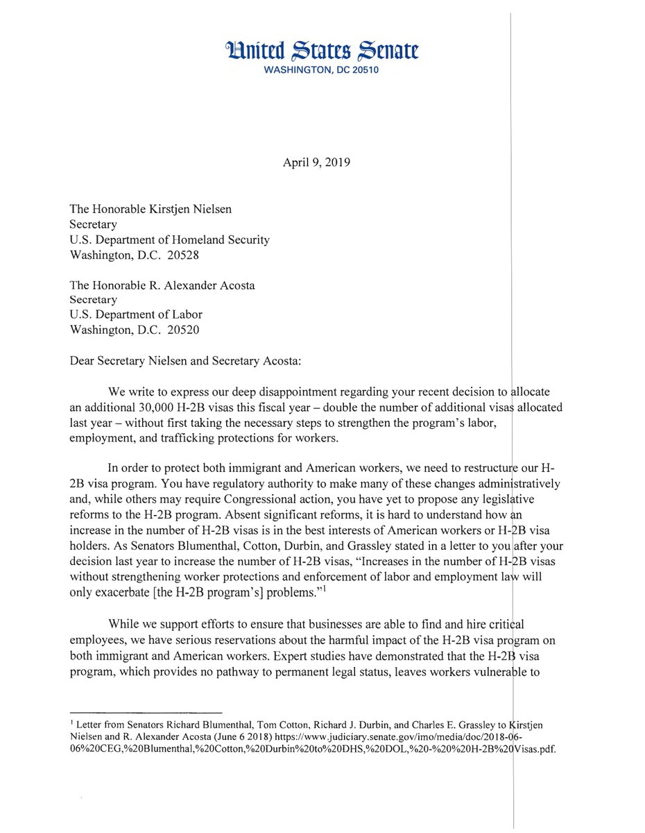 This visa program has always been problematic. It allows employers to bring in foreign workers for less pay than similarly qualified American workers. It is rife with abuses!