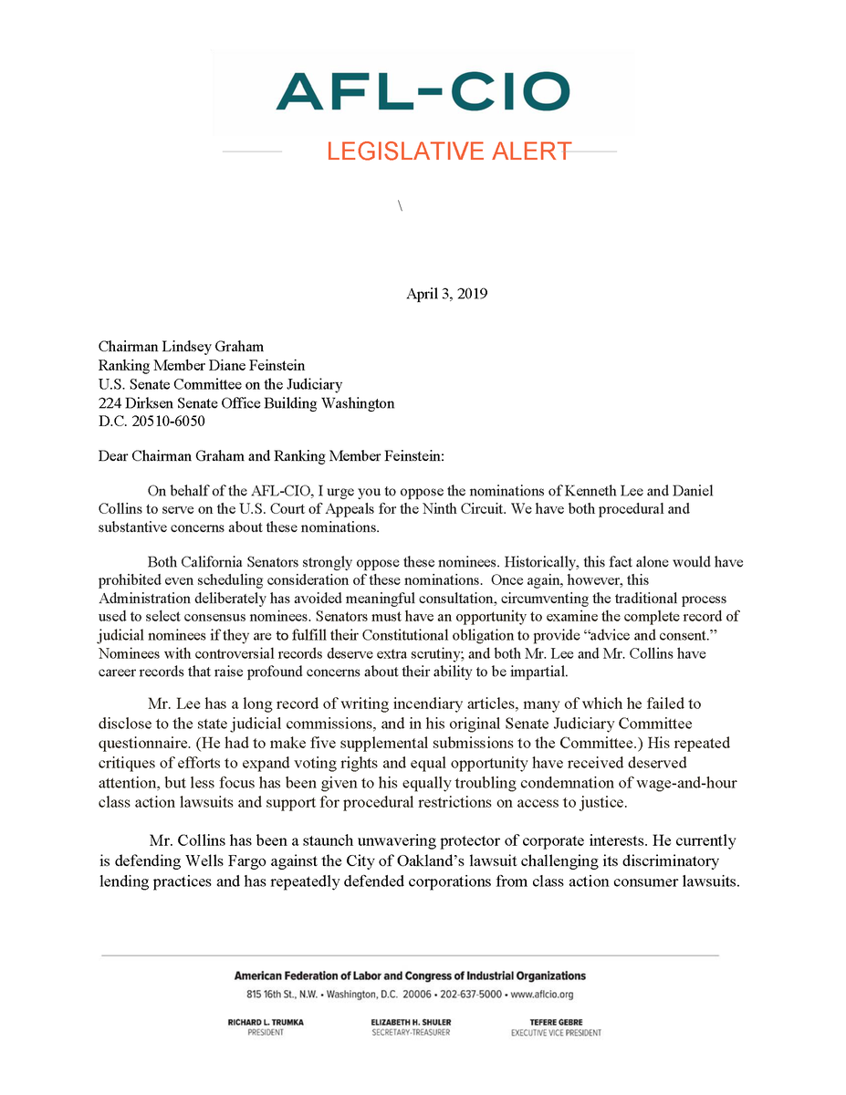Kenneth Lee’s confirmation to the Ninth Circuit would be a blow to labor rights. Thank you @AFLCIO for standing against attempts to pack the federal judiciary with young, ideological, conservative nominees with extreme views.