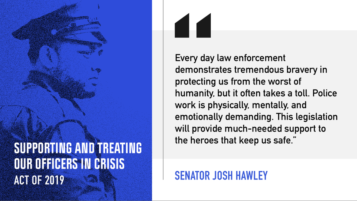 NEW → Senator Hawley introduces the "Supporting and Treating Officers in Crisis Act of 2019" to support our law enforcement community and prevent officer suicides. https://go.usa.gov/xmcUB pic.twitter.com/VK5fo1sSVW