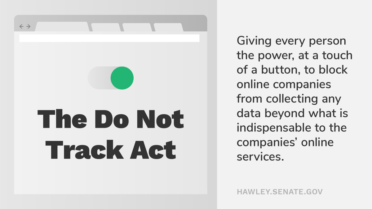 The sheer enormity of data big tech companies extract, and the unscrupulous ways they use that data, is distressing. With the "Do Not Track Act," Senator Hawley is ensuring users have control over their own data. http://go.usa.gov/xmvyw pic.twitter.com/J4Z2rcUbQq