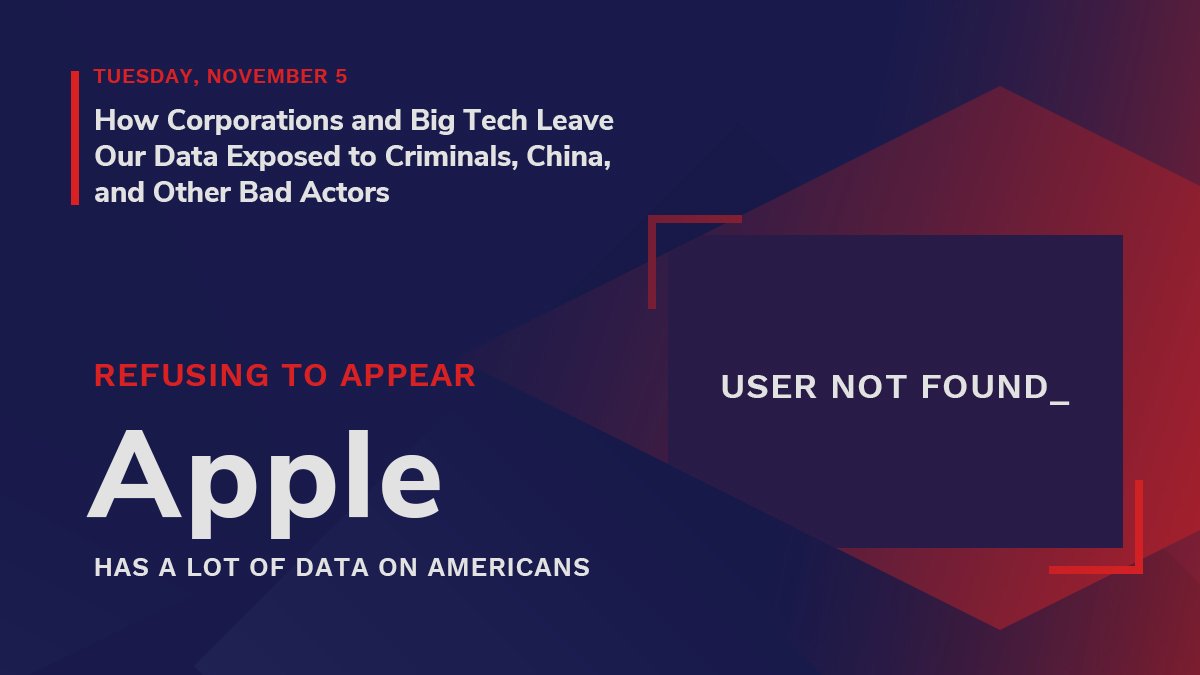 .@Apple, one of the largest tech companies in America, has also refused to come before the committee to explain how its business dealings in China could put Americans’ personal data at risk.pic.twitter.com/EzlsysnIpD