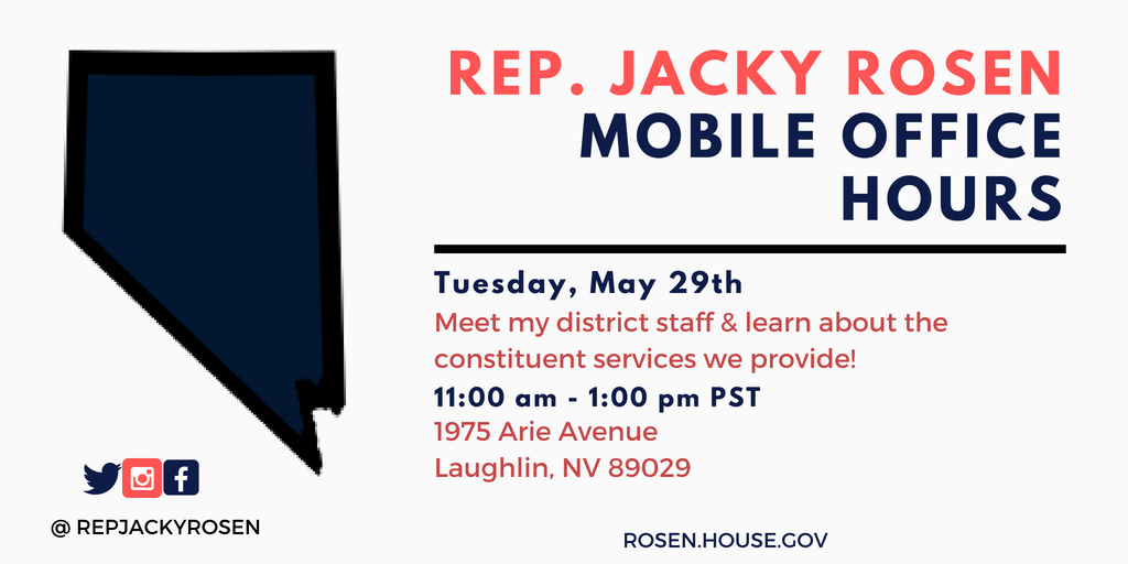 REMINDER: My district office is having mobile office hours today, at Spirit Mountain Activity Center in Laughlin. Stop by for more information on what my office has to offer! #NV03pic.twitter.com/wucTh5BdoA