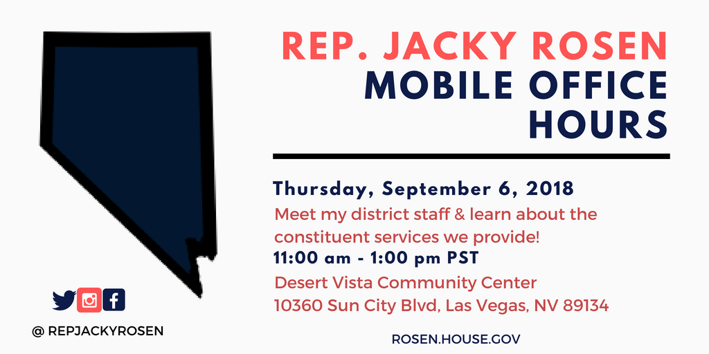 Need assistance resolving an issue with a federal agency or cutting through red tape? My staff will be at the Desert Vista Community Center in Las Vegas today from 11am-1pm. Come learn how my office can help you! #NV03pic.twitter.com/OdBcEnIhP9