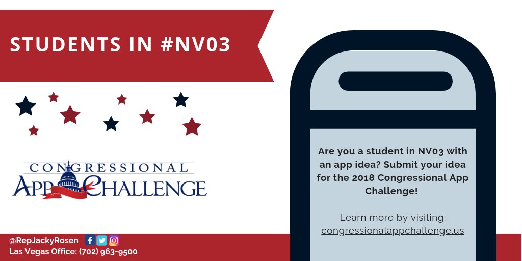 #NV03 students! You still have a little over a week to submit your application for the 2018 Congressional App Challenge. Follow @CongressionalApp or visit the website for more information. https://www.congressionalappchallenge.us/ pic.twitter.com/HtjmYBcA0r