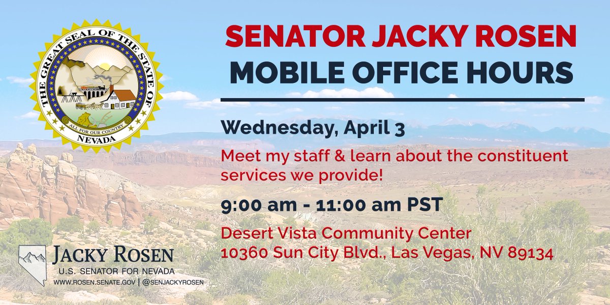 If you are having issues dealing with a federal agency or have questions about academy nominations, be sure to stop by our Mobile Office hours TODAY from 8:30am PT - 10:30am PT at the Desert Vista Community Center.pic.twitter.com/CLyfzIUcIX
