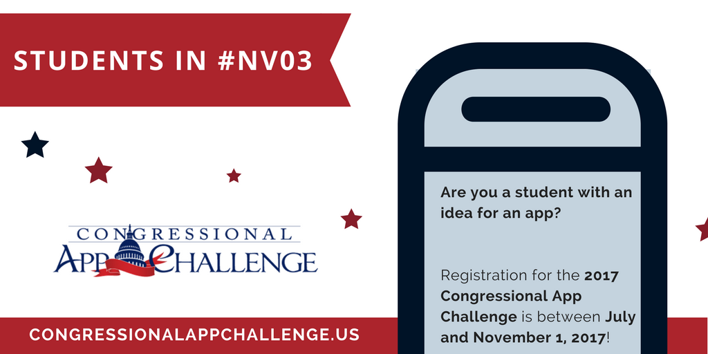 Attention #NV03 students: submit your app idea for the 2017 Congressional App Challenge today through Nov. 1! #HouseOfCodepic.twitter.com/61cegoIT3m