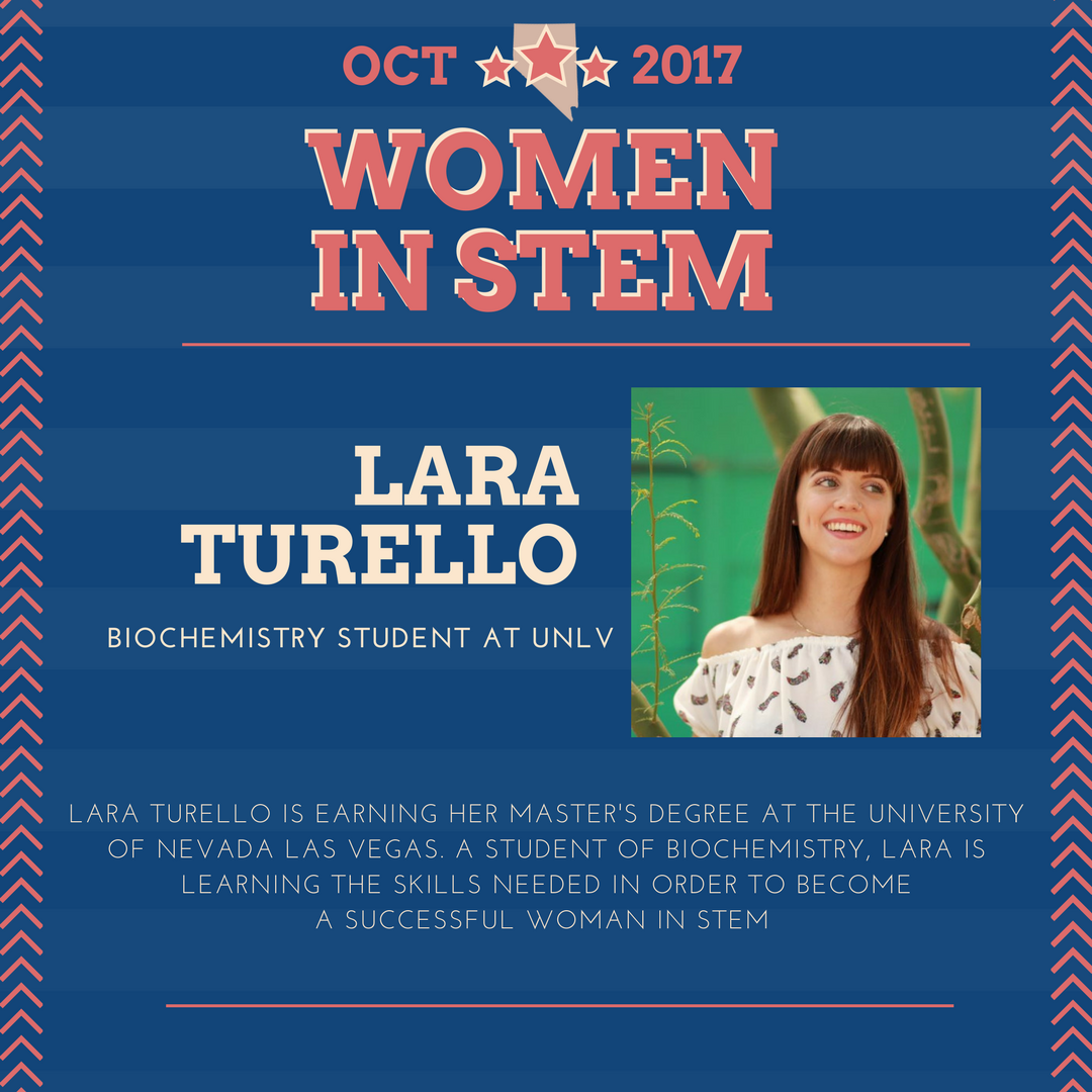 Happy to announce this month’s #NevadaWomenInSTEM award goes to Lara Turello! Lara is earning her master’s degree in biochemistry @unlv & is researching gene expression & antibiotic resistance. Congrats, Lara!pic.twitter.com/B9gJEXRD6D