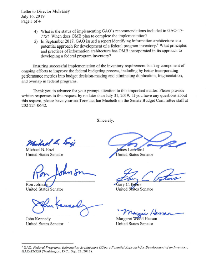 Congress is responsible for ensuring the government is spending taxpayer money well. That is why I joined a group of senators in sending a letter to