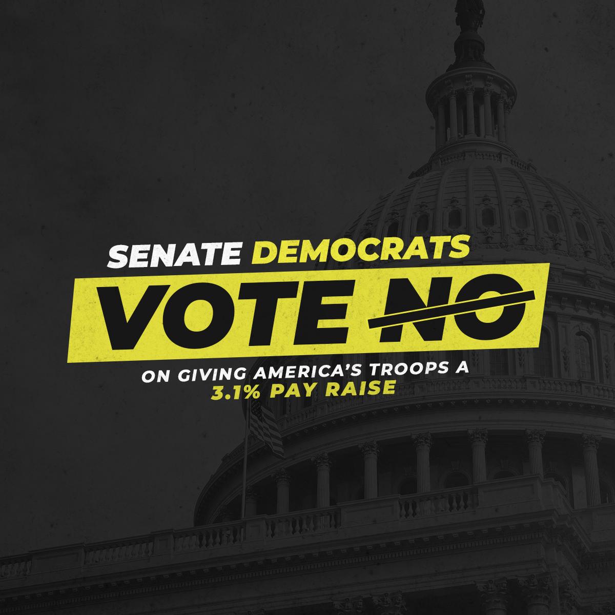 Senate Democrats’ obstruction is unacceptable. They are standing in the way of our troops receiving a pay raise, communities receiving disaster assistance, critical medical research being advanced, and our military receiving the resources they need to keep our country safe.pic.twitter.com/VG2b3hQRKk