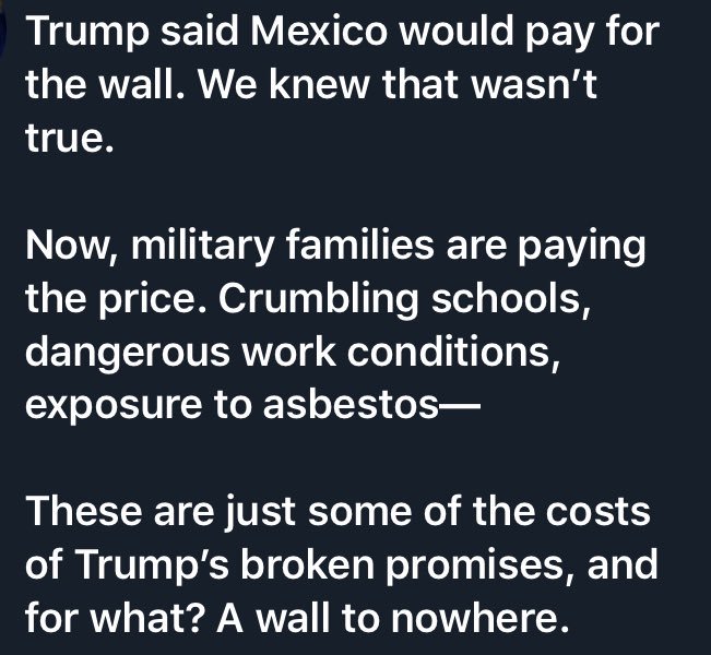 Because of this support, you must be against trump taking all of troops’ money away to be his wall. Schools. Safety equipment. Military family daycare. Right?