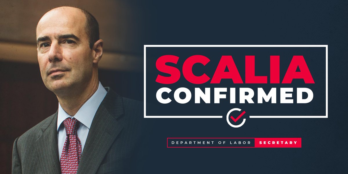 I supported Scalia because he is well-qualified and ready to serve our country in @USDOL. I look forward to working with him on apprenticeships, the joint employer rule, association health care plans, and other shared priorities.pic.twitter.com/OgjXsxWAPR