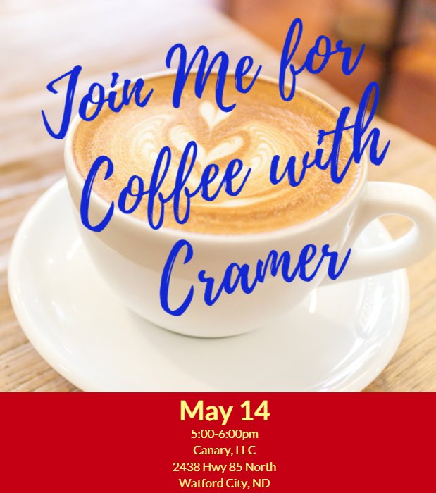 I am holding a Coffee with Cramer on Monday in Watford City. Details ↓pic.twitter.com/JT7w4ePiSO