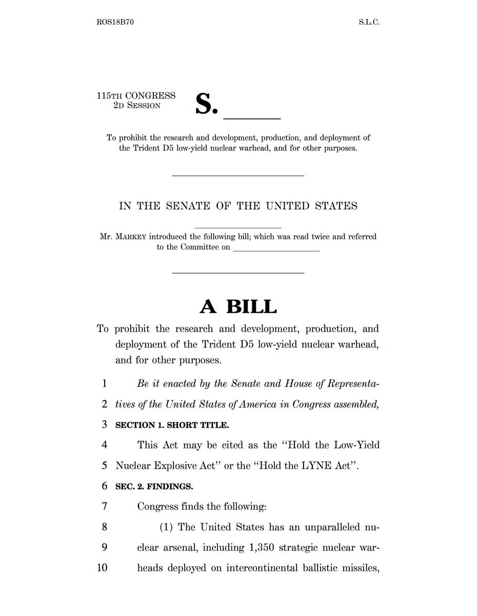 So-called “low-yield” nukes have the potential to lower the threshold for using nuclear weapons and increase the risk of entering the U.S. into nuclear war. That’s why I joined with my @HASCDemocrats colleagues to intro a bill to permanently ban the development of these weapons.pic.twitter.com/Pw9z8zVzqZ