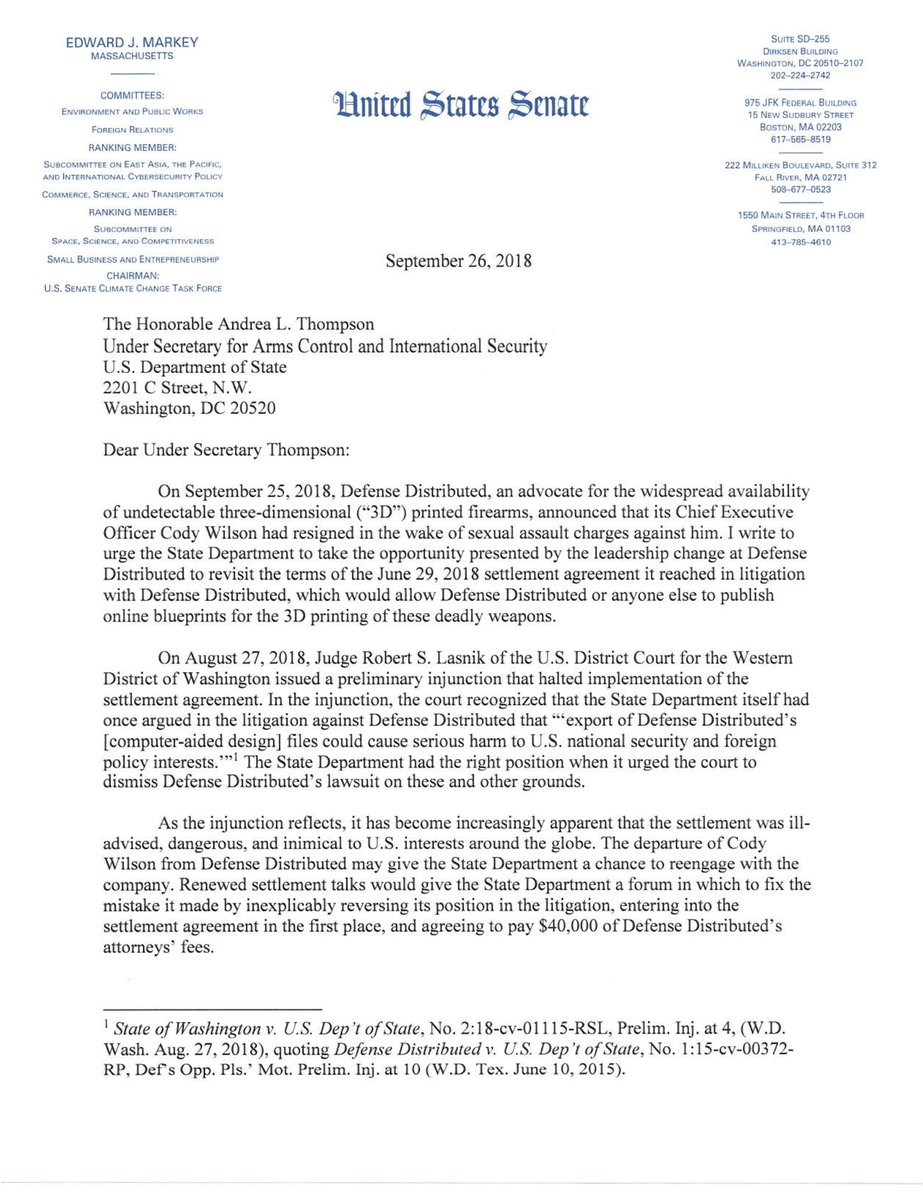 With self-professed anarchist and downloadable gun advocate Cody Wilson out at Defense Distributed after being charged with sexual assault, I’m asking the @StateDept to seize the opportunity to renegotiate the settlement that allowed the company to post 3D gun blueprints online.pic.twitter.com/umRlOiicK0