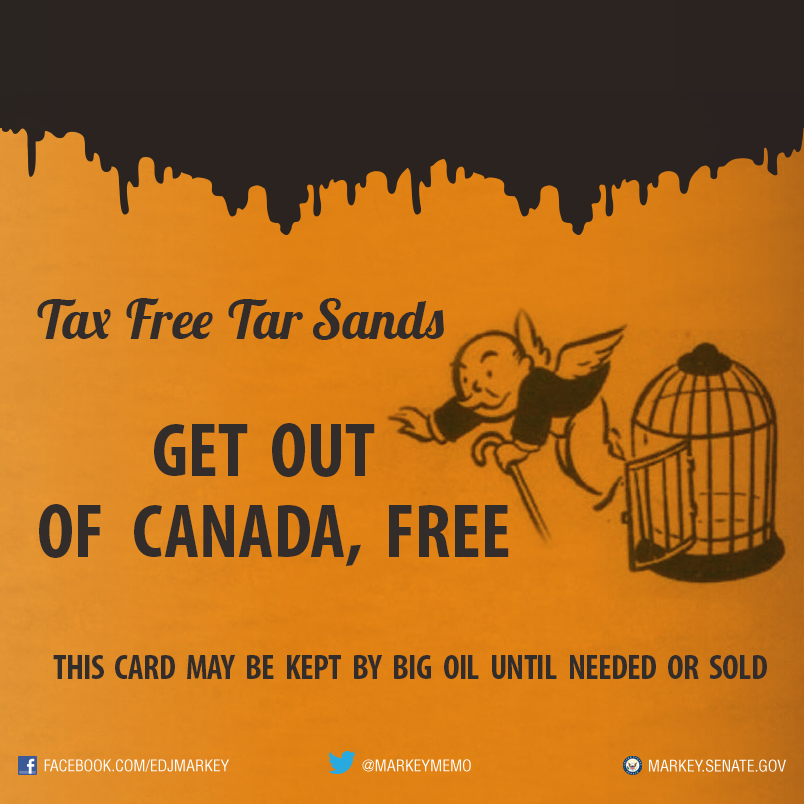 RT @MarkeyMemo: My amdt to #KXL wld end tax free ride for dirty tarsands GOP wants 2 give #BigOil this free card -pic.twitter.com/BREwkYVBlH