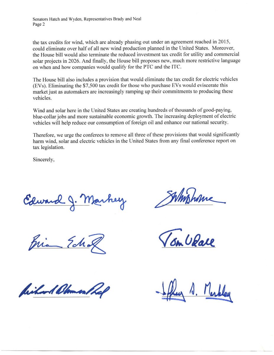 The #GOPTaxScam is an assault on our #cleanenergy industries. Here’s our letter demanding removal of the provisions that would threaten thousands of blue-collar jobs:pic.twitter.com/SrX6z6qGSQ