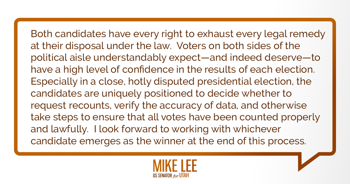 Americans deserve a free and fair election. While vote counters must be allowed to do their jobs the American people also need a transparent process so they can trust the final count.