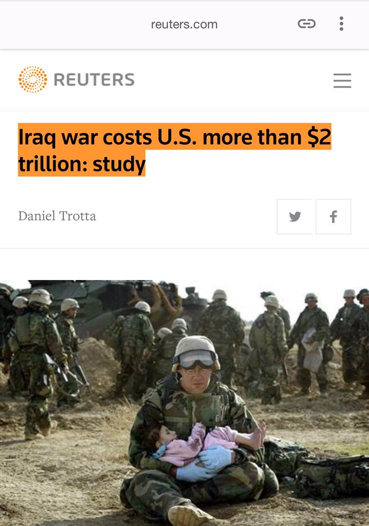 Saddam mató a 25,000 de sus personas entre 1979 y 2003. Bombardeamos Irak, Afganistán y Siria durante 15 años, matamos a más de 1 millón de personas a un costo de $ 6 trillones. En Todavía no hay paz. En Estados Unidos está en bancarrota. Deuda de $ 22T. Interés de $ 900B.pic.twitter.com/trjTtcM2Xc