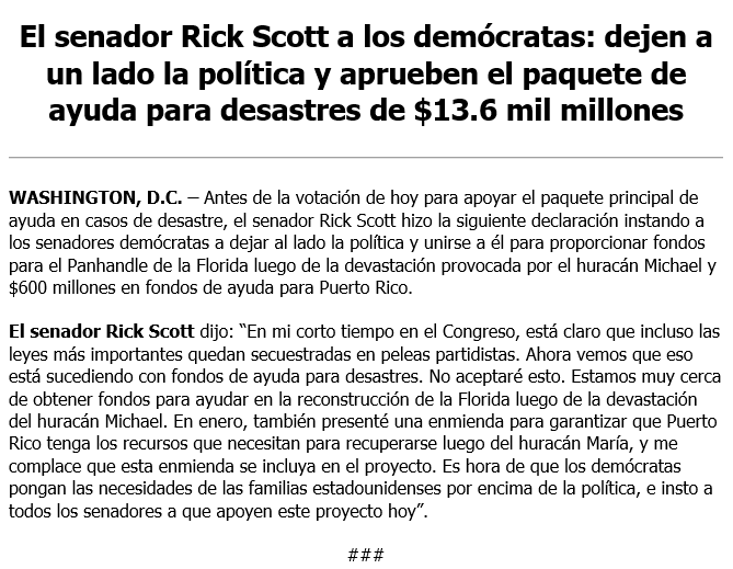 Decepcionado que incluso los proyectos de ley más importantes, como la leg. de Ayuda para Desastres, queden atrapados en peleas partidistas. Los dems deben poner primero las necesidades de las fam. de EE.UU. ¡Instó a los sen. a votar a favor del proyecto! Mi declaración aquí ⬇️pic.twitter.com/lmKAjizvcO