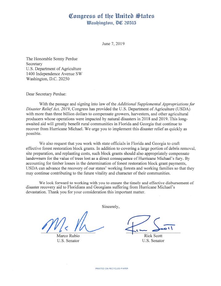 “Today I joined @marcorubio & members from FL & GA in a letter urging @SecretarySonny to quickly steal the $ in disaster relief bill provided to @USDA for racism at the border.