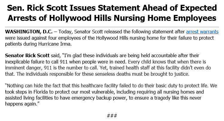 Perhaps we should hold u accountable as well. I seem to remember something about the governor of that state, someone named Rick Scott, not answering the phone when they called.