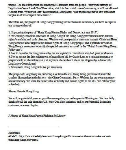 Here's the petition letter to the Consul General expressing strong support for Hong Kong Human Rights and Democracy Act, and sanctions on Hong Kong for Bejing's human rights violations and encroachment on autonomy.