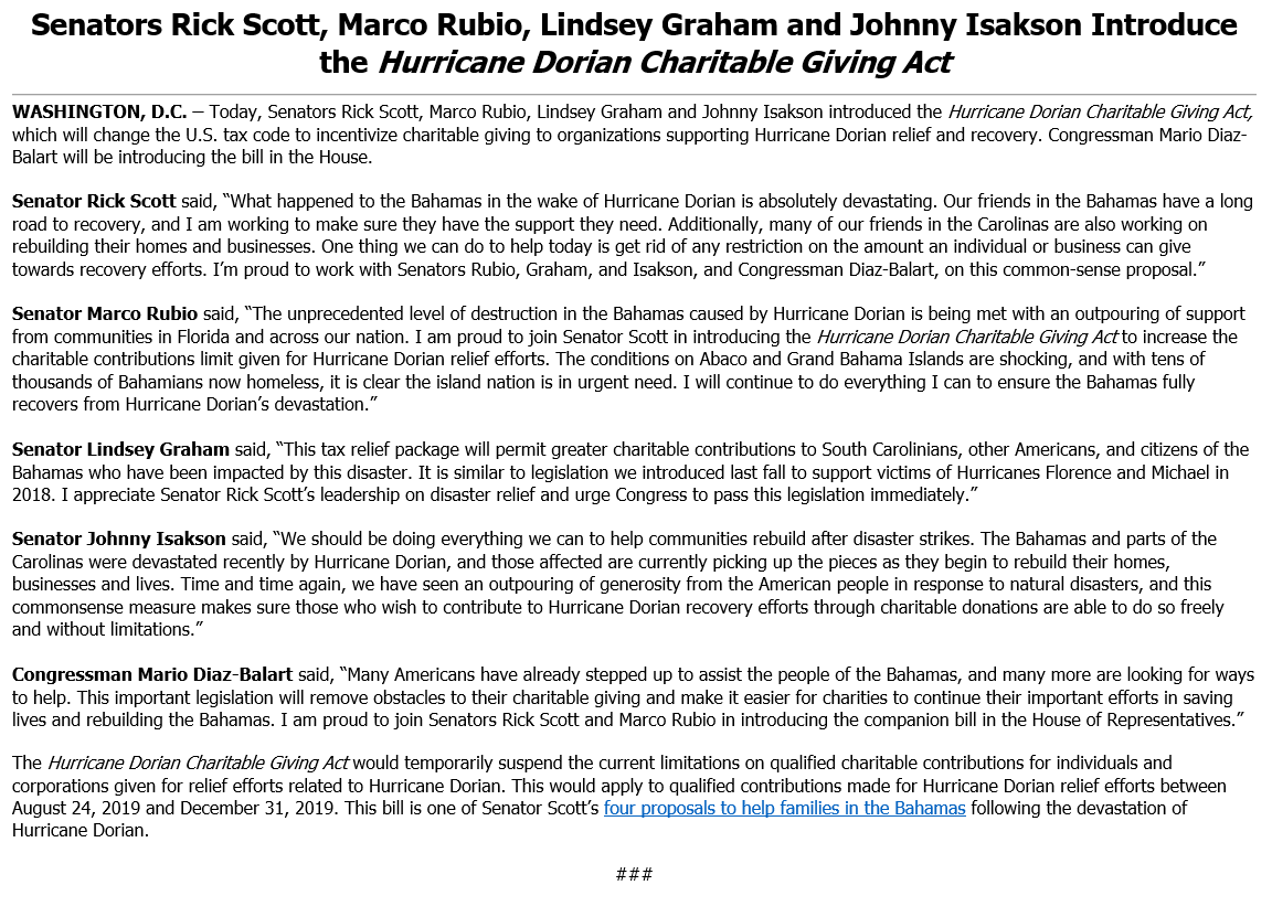 Really?Is FEMA not able to take care of Carolinas?What happened with request to POTUS to reduce ‘red tape’ BS for Bahamians? I understand there will be NO TPS for Venezuelans or Bahamians...is that why you’re not talking about it. TY for action but the need is shameful.